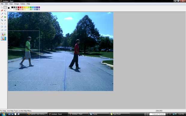 Ahora, abrir la pintura dos veces. En uno, haga clic en editar y pegar desde y pegar uno de sus cuadros. Probablemente tendrás que alejar. En el otro, hacer lo mismo con la otra imagen. En la segunda pintura, use el botón seleccionar de forma libre en la esquina superior izquierda y trazar alrededor de sí mismo. Asegúrese de que incluir partes del fondo. Puede incluir menos de fondo dependiendo de cuán cerca estará a sí mismo en la imagen final. Una vez que hayas hecho esto, utilice Ctrl C o cualquier otro método de copiar y copiar el contorno. Pegar en la otra pintura y línea hasta el fondo perfectamente. No debería ser capaz de decir donde comienza un cuadro y otro comienza. Si es posible, debe volver atrás y ajustar el color aún más para que los colores coincidan. Si usted golpea la cámara, puede sólo tienes que tomar otra serie de fotos. Asegúrese de que ha incluido las sombras.