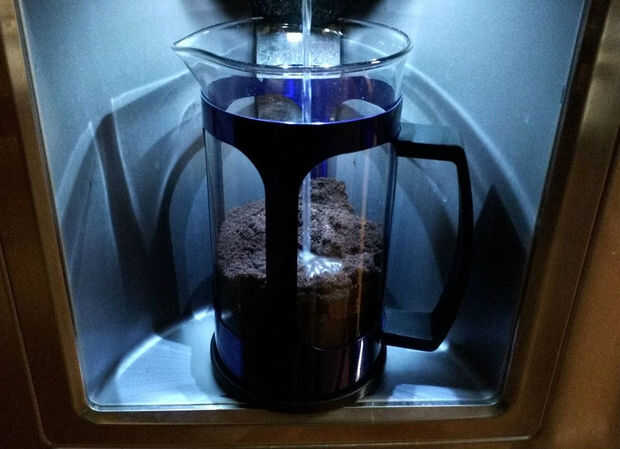temperatura durante al menos 12 horas y hasta 24. Después de haber empapado el poso del café, suavemente presione el émbolo hasta que los terrenos alcancen el fondo de la jarra.
