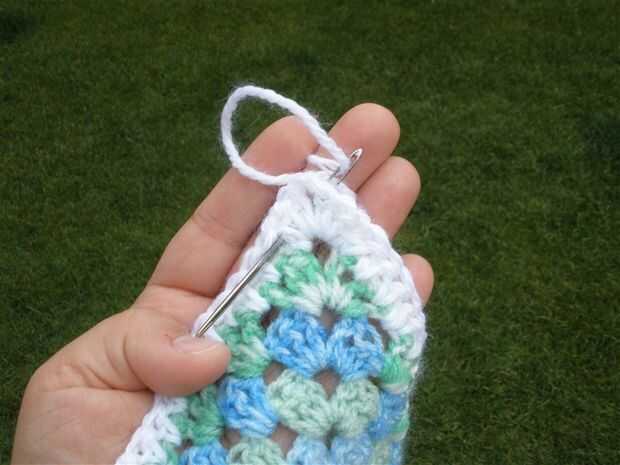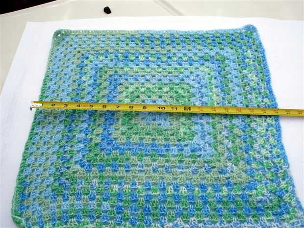 Verificar el tamaño! Si la manta es menos de 19" después de 21 redondo (no estirado) entonces usted tendrá que añadir más rondas. Esto puede requieren hilo adicional, o ser creativo en la adición de un borde diferente que una simple abajo.
