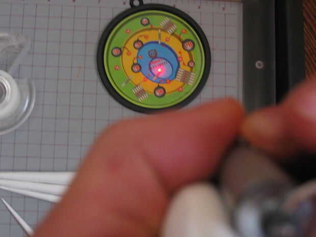 Comprar una linterna y cinta en el tubo, el tubo debe ser fuerte para sostener esto. como el lazer, alinee la linterna con el tubo de