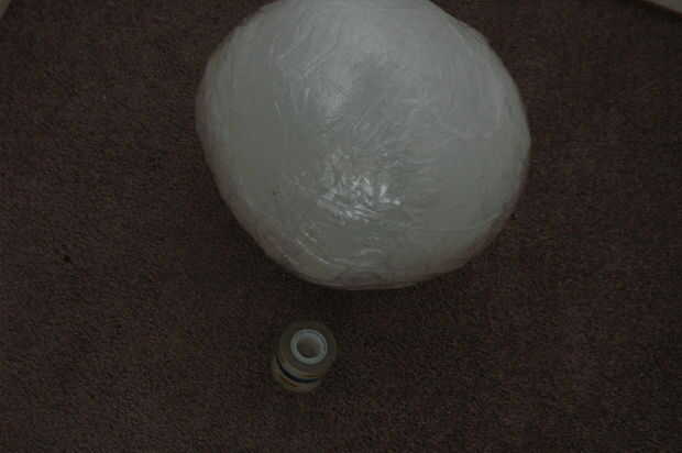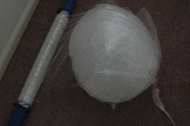 Después de que el formulario está cubierto completamente con envoltura de plástico, puede comenzar a reflejar ese proceso con la cinta. Cobertura es especialmente importante en este punto. Si usted está usando cinta adhesiva transparente y claro envoltura plástica como estoy aquí, puede ser muy difícil decir donde han colocado cinta. Esta etapa es fundamental, como es la estructura rígida de la seta. Aplique cinta liberalmente! Se necesitan al menos 3-5 capas en cada punto de la escultura para que mantenga la forma. Más capas hará un fundido más robusta, que es útil si se va a mover a menudo.