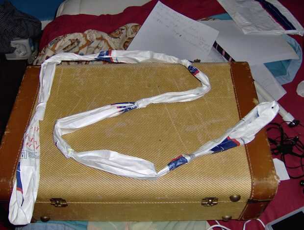Tyvek es grandes cosas. Hice este sencillo proyecto con algún desecho Tyvek para ver cómo funciona con pegamento antes de asumir un reto más grande, hacer una cubierta para mi moto (cargado con touring gear).Paso 1: Obtener algunos Tyvek El primer pa