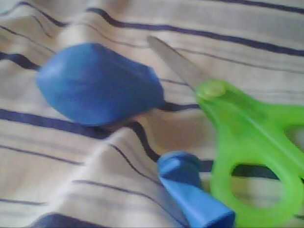 Con las tijeras corta el globo derecho donde empieza a engordar