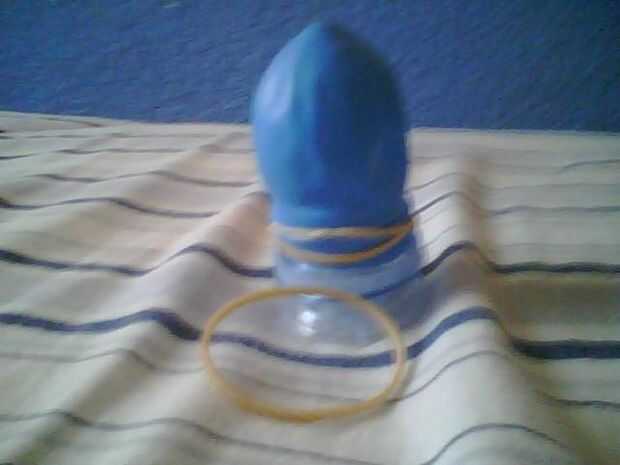 con las gomas Rap alrededor de la parte inferior del balón para sujetar firmemente (u puede también pegamento o cinta adhesiva it(optional))