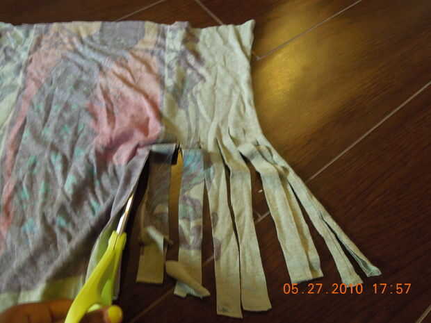a continuación, corte tiras pequeñas que suben a medio camino en la parte inferior.