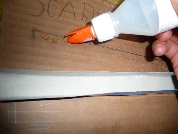 aquí es mi barato y fácil de hacer cartón casco de hierro Man(TM) que hice para menores $3. Usé cartulina (tablero de caja), papel brillante, pintura acrílica oro y un rotulador. Las herramientas son knives(paper cutters), grapas, tijeras y una aguja