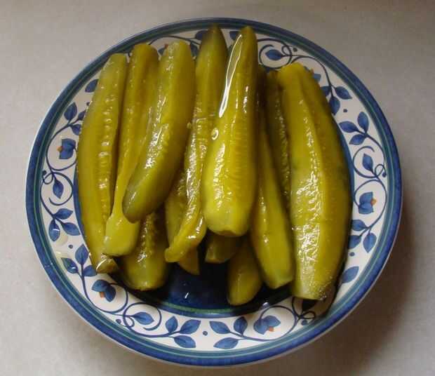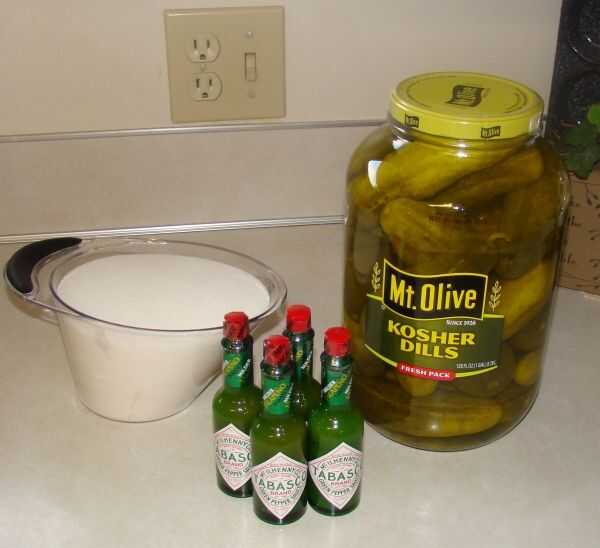 Los encurtidos son un poco caliente y un poco dulce. También son muy fáciles de hacer!  Disfrutamos de estos con otros aperitivos servir en las fiestas de excursiones y deportes de verano. También son buenos en sándwiches. Preparación tarda aproximadamente media hora, y entonces es mejor si se sientan durante unas dos semanas antes de que les sirva. Hay sólo tres ingredientes. Un galón de salmueras de eneldo enteros, 4 tazas de azúcar y 8 onzas de salsa verde caliente... Salsa picante roja sólo no trabajar bien.