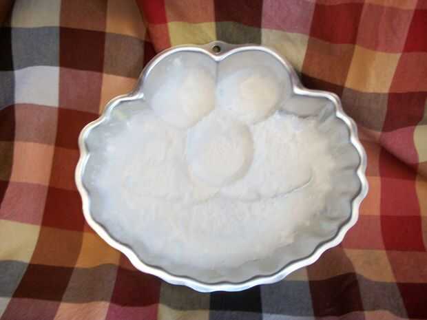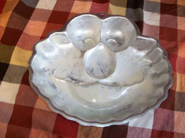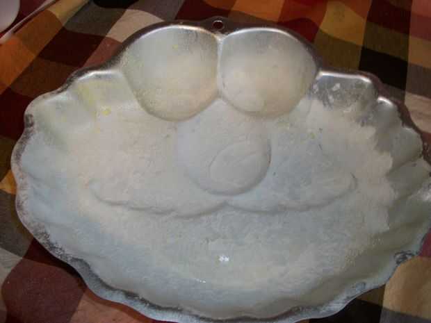 2. engrase la torta de Elmo con grasa vegetal, asegúrese de que todas las hendiduras están bien engrasadas.