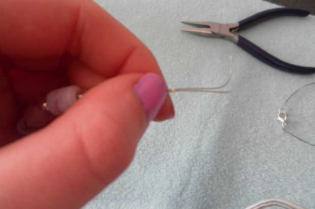 Este es un divertido disfrutar de pulseraPaso 1: Lo que usted necesitaGrano de cristal del bicone, pieza de bronce final y hierro JumpringPaso 2: Hacer el bucle de inicioEn primer lugar, cortar unos 80cm tigre de la cola, más si usted quiere una puls