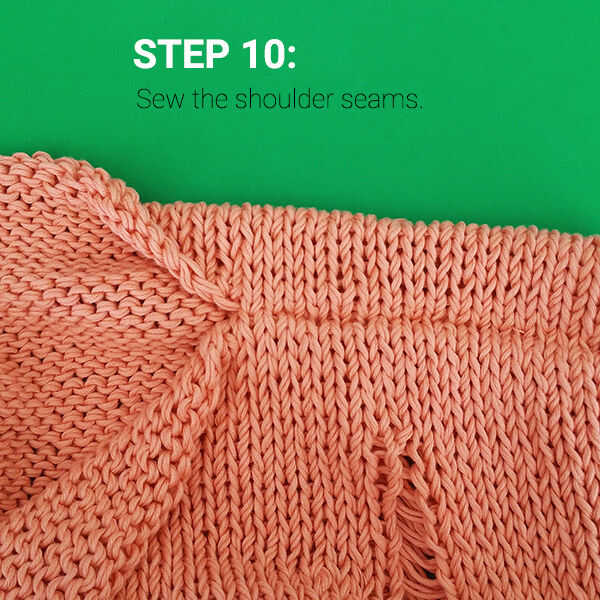 Paso 10: Utilice el método horizontal invisible para coser las costuras de los hombros en ambos lados. Deja 13.5" para la abertura del cuello.