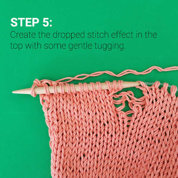 Paso 5: Jale suavemente a ambos lados de las puntadas se soltó hasta que caen hacia abajo al molde en fila.
