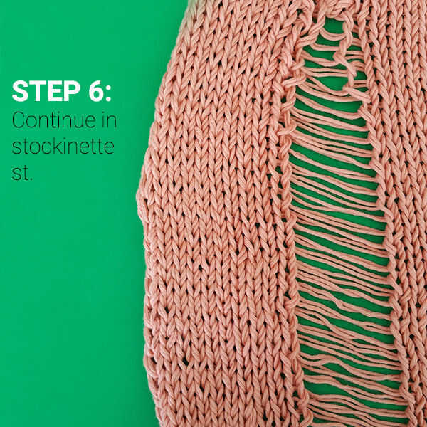 Paso 6: Seguir en Jersey para otro 7,5 pulgadas (aprox. 26 filas), terminando en una fila de puntilla.