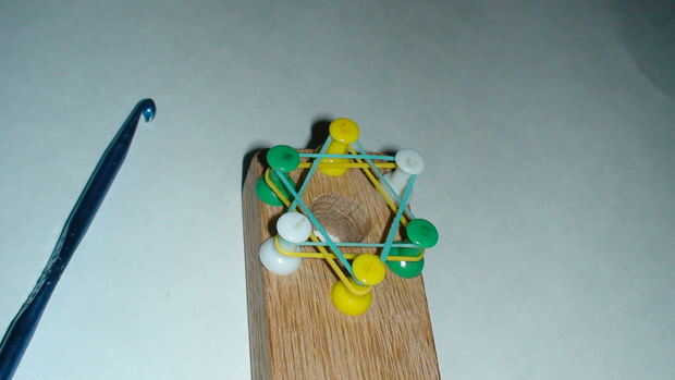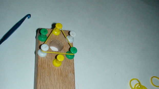 por favor como y seguir!!!!!! Asegúrese de que el telar se parece a las fotos!Paso 1: materiales Se necesita:Un telarUn gancho deBandas del arco irisClips dePaso 2: Comenzar con un telar En el telar, lugar de su primera banda de caucho diagonalmente