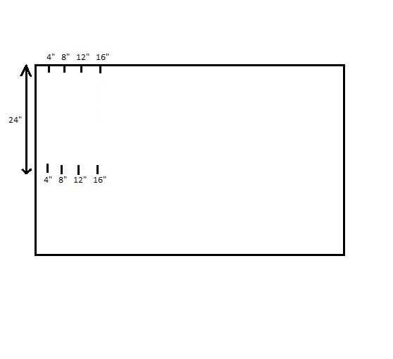 En la madera contrachapada de inicio en la medida de la esquina 16" en la final.  Hacer marcas en 4", 8", 12 "y 16".