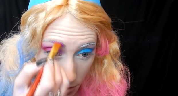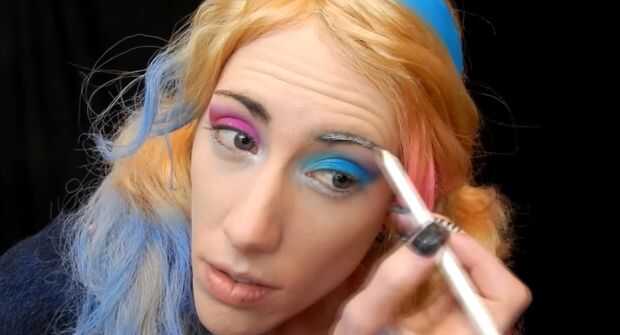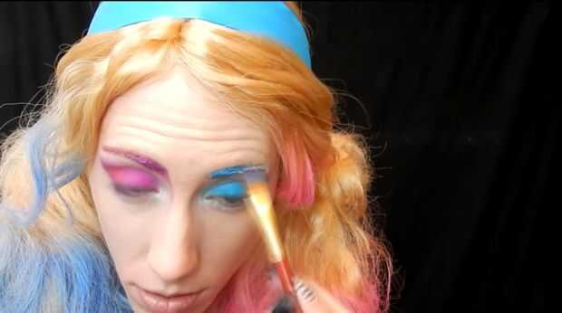 Primero preparado mis cejas con un lápiz de ojos blanco, luego usé el mismo azules y rosas en mis cejas. color cerca del frente oscuro cerca de la parte posterior de la luz. Yo también de la droga algunos del color bajo mis ojos y mi nariz.