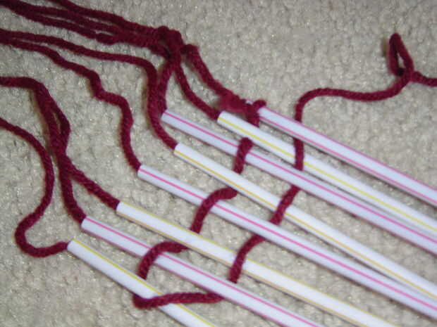 esto ayuda a que tengas un conocimiento básico de cómo tejer. Si usted no va así. BAJO más bajo más bajo sobre BAAAAACK lo mismo. Tomar un nuevo trozo de hilo (corte todavía no) y atar a uno de la paja final. luego pasar bajo la espalda. a ver si te fijas en la foto.