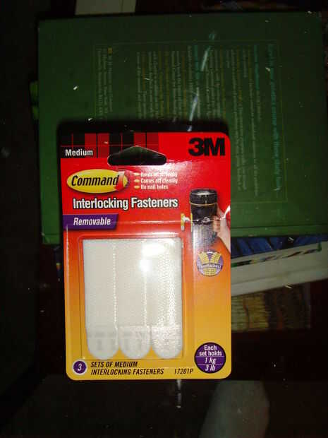 Para completar el paquete, se necesita una forma para colgar el reloj y apliques en la pared. Si no te importa taladrar agujeros en la pared, entonces todo lo que tienes que hacer es encontrar algunos clavos y taladro lejos! Sin embargo, vivo en un apartamento, así que me gusta minimizar el daño que hacen a las paredes. Con este fin, he encontrado estas tiras de velcro adhesivo de 3M que 3 libras cada uno (ver foto 1). Estas tiras son bonitas porque tienen no sólo el reloj en la pared, pero el cierre de velcro permite tomar abajo el reloj, reemplace la batería y poner el reloj hacia atrás para arriba. Usé una tira en cada uno de los candelabros y dos tiras en el reloj. Simplemente ajustar el reloj, poner en las tiras, colgar el reloj/apliques y disfrutar!