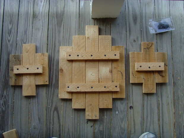 Una vez que tengas todas las piezas correctamente alineadas, poner los soportes de 1.25" de ancho en la parte posterior como se muestra en el diagrama. Asegúrese de que los soportes de tocan todas las tablas y son por lo menos 1" de los bordes exteriores del reloj y apliques. Orificios para los tornillos (1 de cada tablero para cada soporte) y atornille los tornillos.