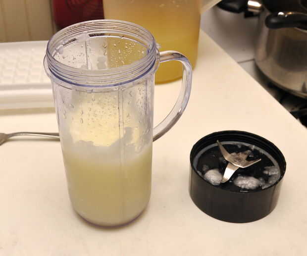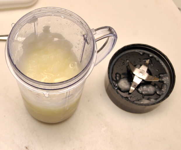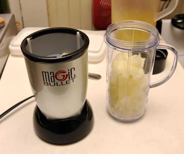 Una vez que sus cubos de hielo estén listos, sacarlos de las bandejas.  Ahora he utilizado una bala mágica, ajustar según sea necesario para una licuadora u otros.