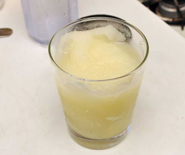 Hice porciones individuales a la vez.  Tomar la pelea de una taza o dos de cubitos de hielo y combinan con casi la mitad de una taza de limonada.  No mido tan bien añadir más de uno u otro según sea necesario.  Mezclar hasta que quede consistencia de granizado.