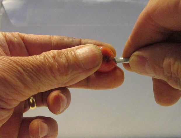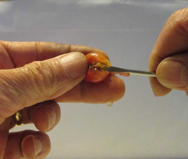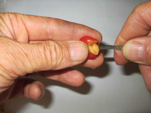 5. hoyo se quita totalmente, inspeccione el interior de la cereza de calidad.
