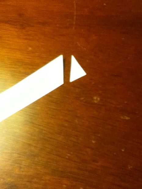 Ahora vas a cortar un extremo, una mitad de un triángulo de modo que usted tiene una pequeña inclinación. Sólo hacerlo a un lado!