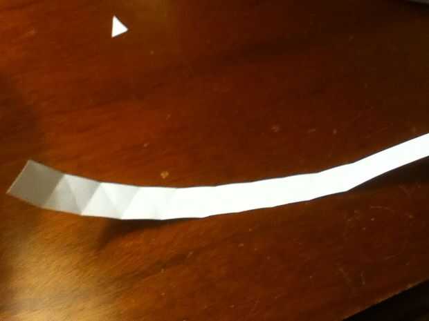 Ahora repetir el último paso pero con alineando la parte más larga del papel con el doblez de la línea le acaba de hacer. Repita hasta que la mayoría del papel se realiza. Para obtener más información, ver fotos. Al final debe parece que tienes una línea de arriba hacia abajo y la derecha encima de triángulos en línea.