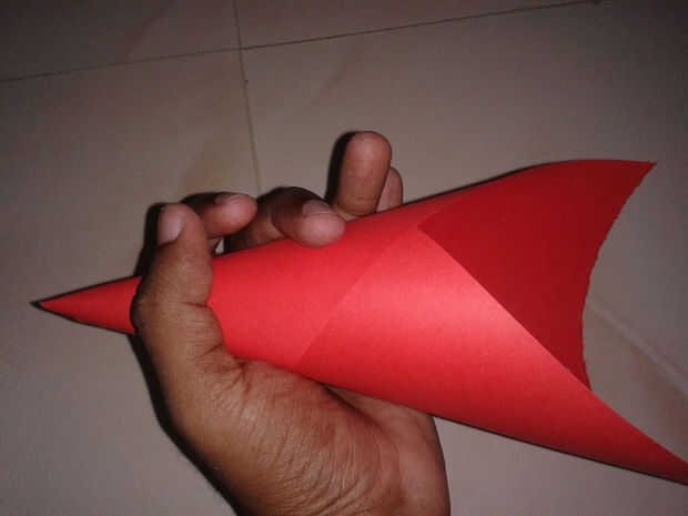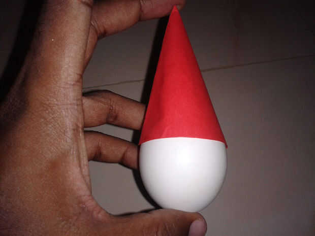 3) corte el cono hasta el tamaño requerido del sombrero a su huevo. Corte pequeños trocitos y verificar el tamaño correcto.