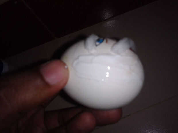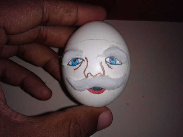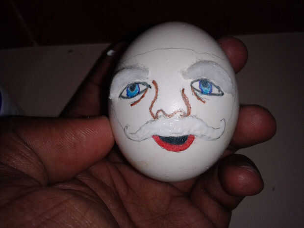2) aplicar pegamento sobre la ceja dibujando sobre el huevo y pegar el algodón allí.
