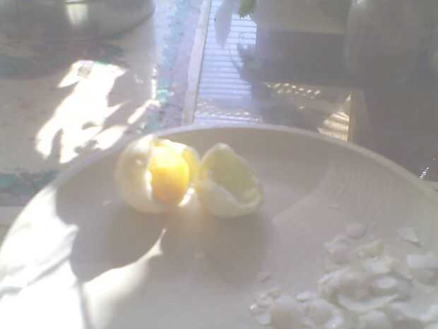 Cáscara de huevo. Esto debería ser fácil si corte los huevos antes correctamente. Cortar, dados o solo comer llano. Ensalada de huevo subir! ¡ Disfrute!