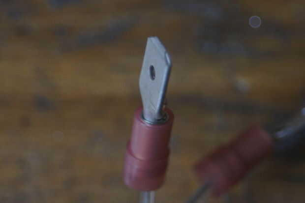 • Poner el cable pelado en el ANP-conector plano (caben los conectores planos más comunes. El color dependerá el grosor del alambre que utilizas)