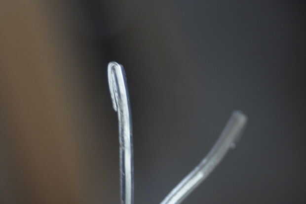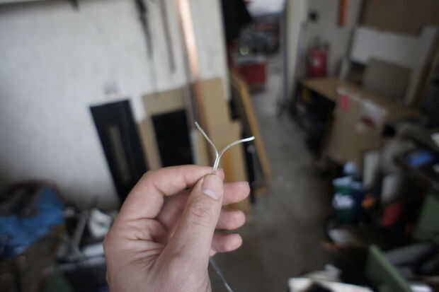 • La tira pasada de 5 mm del cable. (si tienes alambre fino, luego doblar doble)