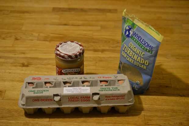 estos super fácil de cacahuate Galletas son sin gluten, sin lactosa y sabor! Tienen sólo tres ingredientes y son divertidas para hacer con sus hijos. Tratar de sacarlos y déjame saber qué piensas!Paso 1: ingredientes Mantequilla de cacahuete cremosa