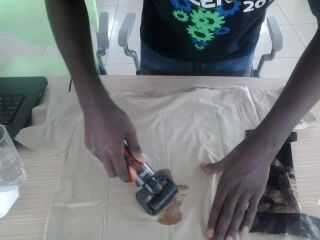 Tomar la camisa y poner un cartón debajo. Esto es para asegurar que esa camiseta es todavía. Comience por colocar la botella de Inkodye de lumi con el rodillo.