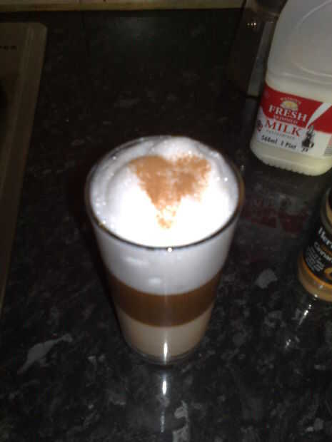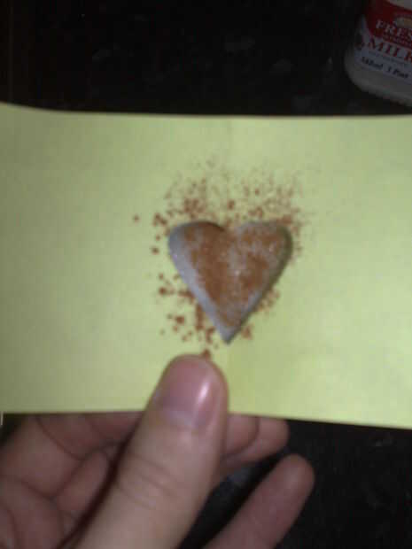 Agarra un par de tijeras y cortar una plantilla de papel. El estilo flirty significaría cortar una forma de corazón, como en mi ejemplo imagenes, pero otras formas o tal vez el texto, deben estar bien también. Agregar la espuma un poco (que le queda un poco, de lo contrario batir algunos nueva :)) sobre el latte del caffe encubrir donde se vierte el café y mantener plantilla justo por encima de la superficie de la espuma. Polvo algunos canela sobre su plantilla y listo, un sutil pero pero directo mensaje de amor, que conduce a caricias en el sofá...