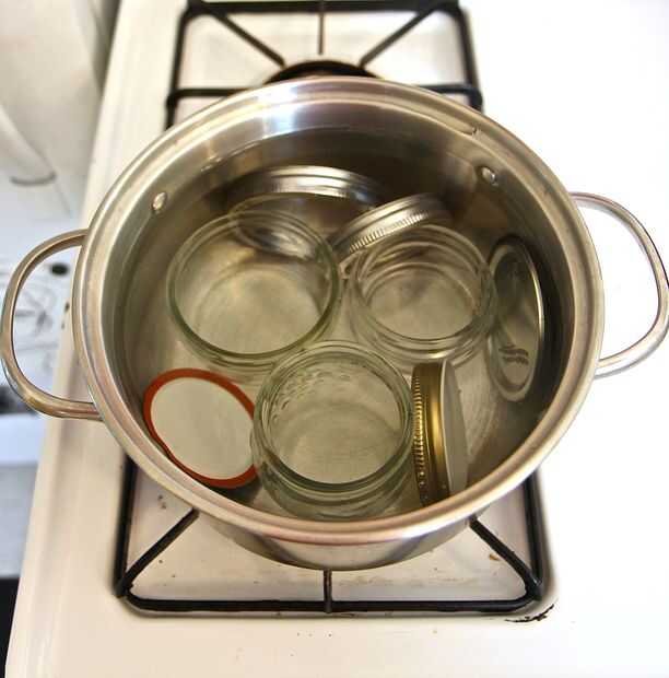 Llene una olla grande con agua. Coloque sus frascos y sus tapas dentro de la olla, sumergir en el agua. Llevar a ebullición y continuar a hervir durante 10 minutos. Esto limpiar y esterilizar tus frascos antes de poner su miel infundida en ellos, reduciendo el riesgo de bacterias. Deje que sus frascos enfriar mientras empiezas a infundir su miel.