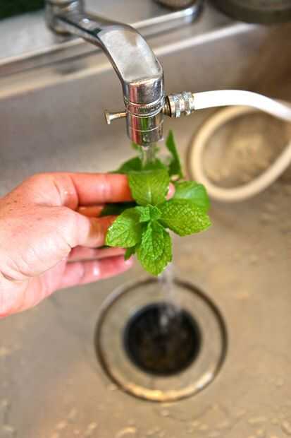 Lave cualquier hierbas o frutas que se puede utilizar bajo un constante chorro de agua fría. Permita que sus artículos lavados a seco. Esto evitará que las bacterias entren en el nuevo lote de miel. También querrá asegurarse de que sus hierbas o frutas estén completamente secas antes de agregar a la miel, no quiere agua en su acabado miel.