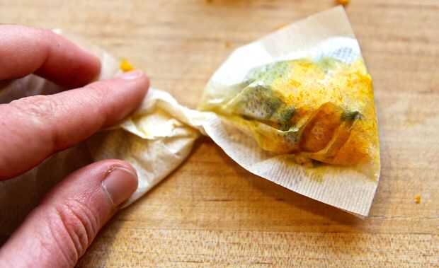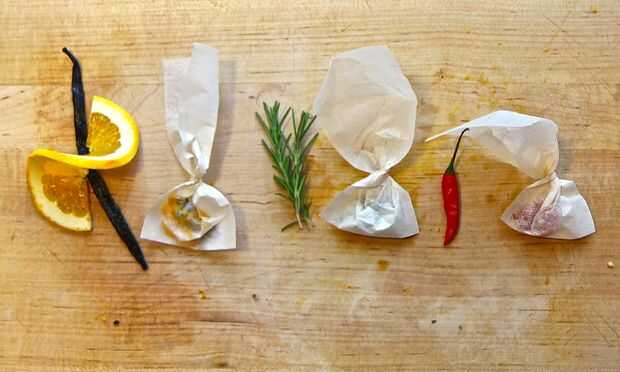 Para este paso, coloque su preparados (picaditas, confusas o ralladura) hierbas y especias en una bolsa de té de hojas sueltas vacío y gire la parte superior para ayudar a la bolsa permanecida cerrada.