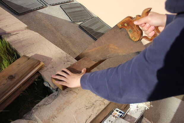 El granero se puede construir con estos planes en cartón o madera contrachapada. Hice un primer prototipo con dos cajas grandes de cartón y luego hizo una versión más robusta usando algunas maderas recicladas. De ustedes tienen niños mayores, puede s