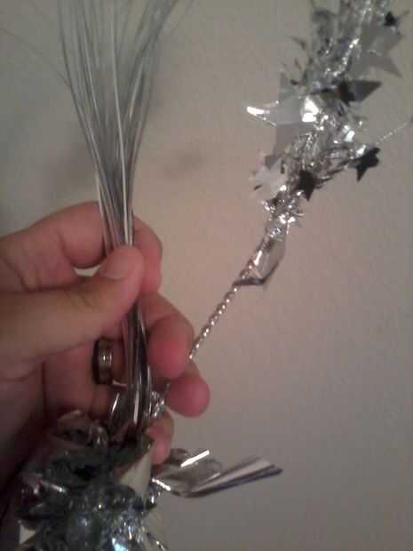 Mover el rocío de la hierba y utilizar una varilla o palo de escoba para formar el alambre central en forma de espiral. No necesito las pinzas porque el alambre central dobla fácilmente.