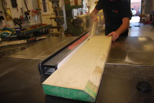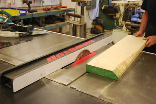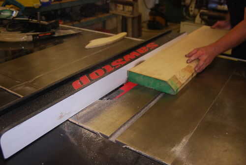 A corte el enfajillado, usted necesitará utilizar una sierra de mesa (una sierra de banda con una valla se puede también utilizar). El grueso de sus bandas dependerá de su diseño, pero debe ser por lo menos 1/8 de pulgada de grosor. Esto le dará suficiente material para trabajar con mientras sigue permitiendo que sea lo suficientemente flexible como para ajustarse alrededor de perfiles curvados.