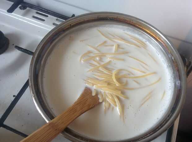 Cuando empiece a hervir añadir los fideos y encienda el calor baja.