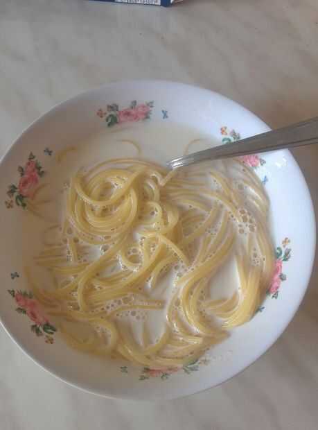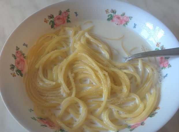 La forma en consumen este plato es llego la leche de la pasta en un cuenco con un cucharón y comer como leche y cereales.
