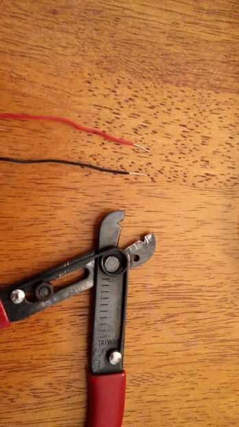 En primer lugar, cortar 2 pedazos de alambre un poco más largo que la longitud de su paja. Con un par de cortadores de alambre, tira de ambos extremos de cada cable, dejando aproximadamente 1 cm de cable expuesto. (No importa qué color son los cables, pero rojo y negro son útiles para recordar que es positiva y que es negativo).