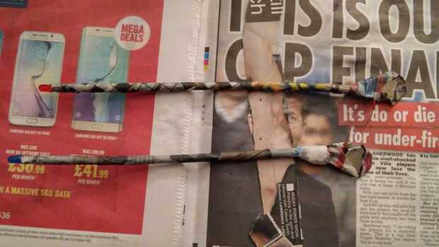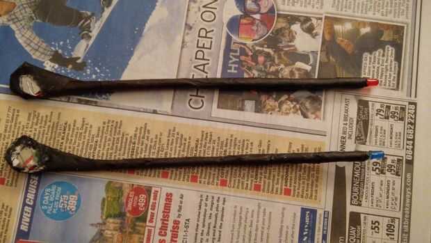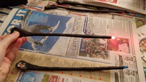 Con el fin de mantener la batería en su lugar y darle nuestra varita algo de fuerza, vamos a cubrirlo en papel maché.