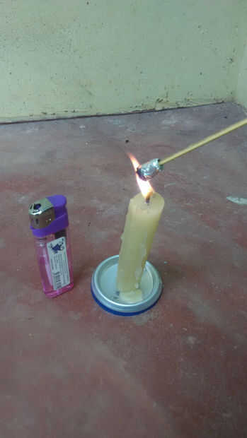 Mantenga la boquilla en la llama durante unos 5 minutos. Retire el envoltorio y revise la punta
