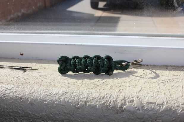 la práctica común para la fabricación de un conector de llavero paracord es un nudo simple. Sin embargo, después de probar esto, pronto noté que el nudo de grande y voluminoso mantiene sobresalen en ángulos extraños y pusiera en el camino al intentar