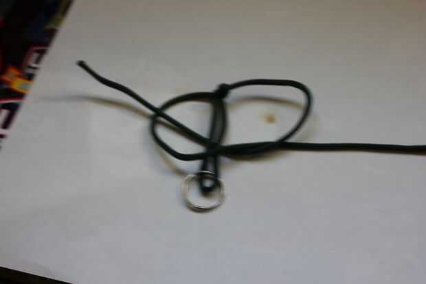 Paso 1: materiales ·2 1/2 pies de paracord o cadena similar· clave o claves·Nut, lavadora o cualquier otro objeto con un orificio de al menos 2 mm de diámetro·scissors·LighterPaso 2: a partir de Tomar un extremo y poner a través del orificio de las t