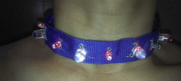 Poner la batería de 3v en el portapilas, entonces conseguir el LED Collar para usarlo usted mismo o poner a su perro.