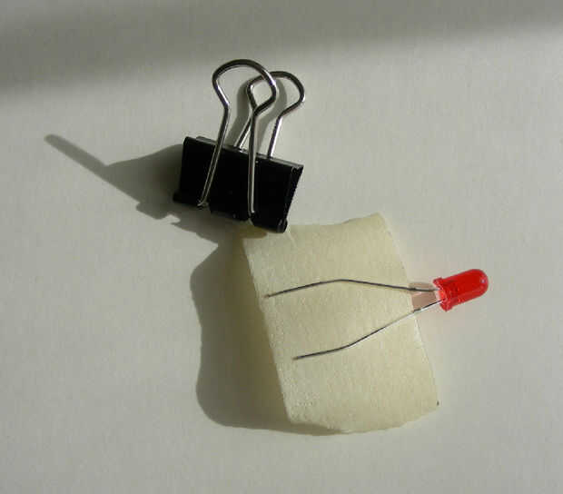 Nota el positivo del LED es ligeramente más largo que el plomo negativo. Los cables positivos y negativos deben estar conectados correctamente el LED a la luz.